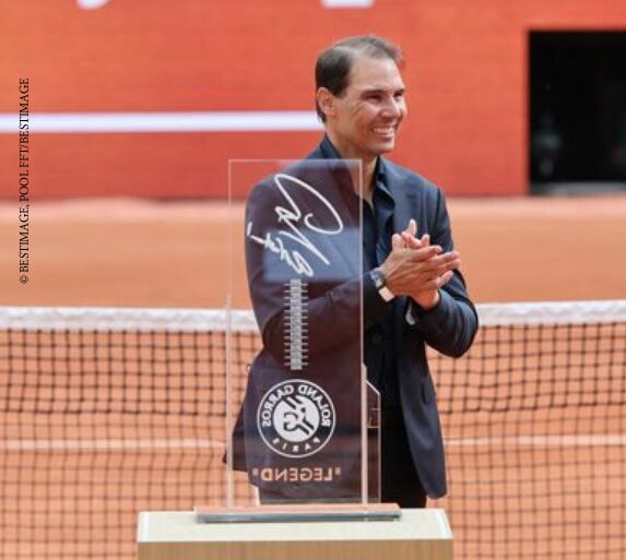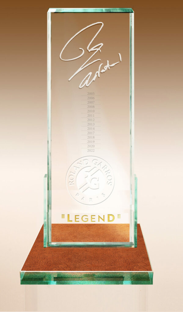 Le Trophée décerné à Rafaël Nadal en distinction de ses quatorze victoires à Roland Garros, pour son départ du tournoi en 2025.